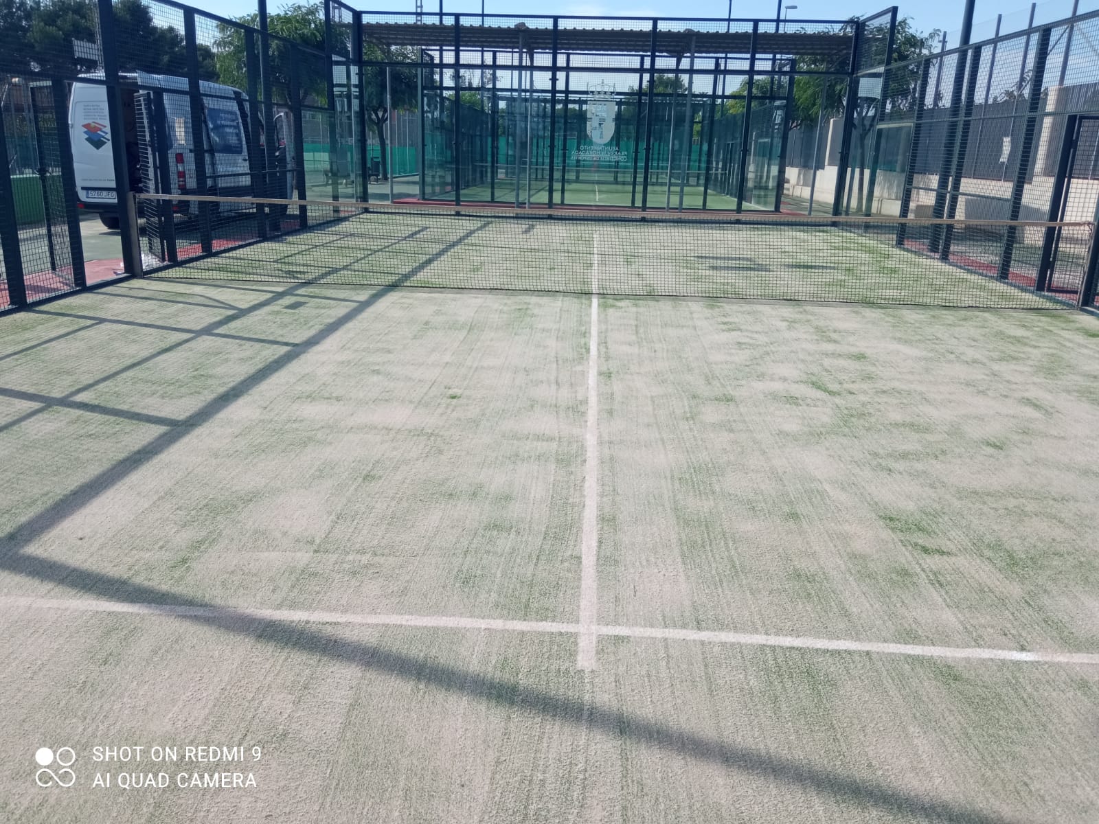 El equipo de Celabasa Sport ha realizado el cambio de un césped y acondicionamiento de dos pistas de pádel en las instalaciones del Polideportivo Pilar de la Horadada.