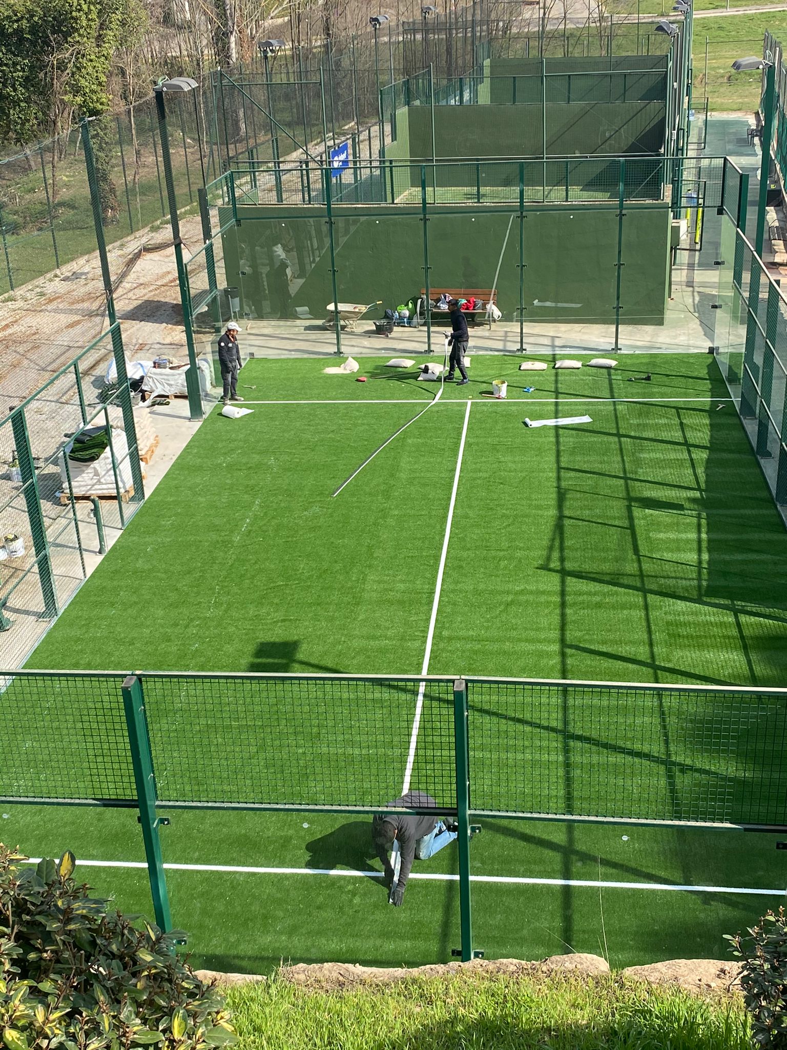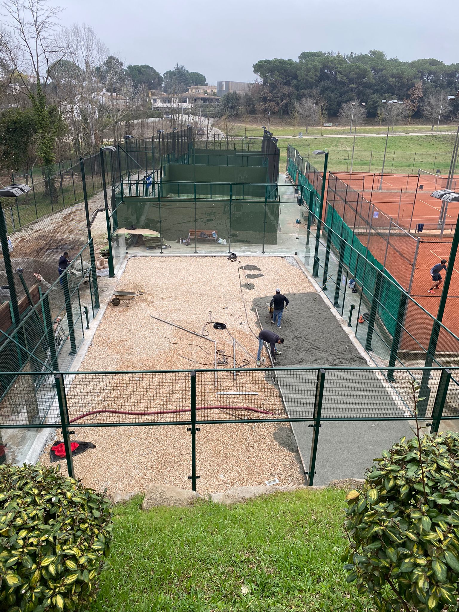 Este mes Celabasa ha realizado la construcción de una solera de hormigón poroso en una de las pistas de pádel del Club Tennis Girona y la sustitución del césped de dos pistas de pádel.